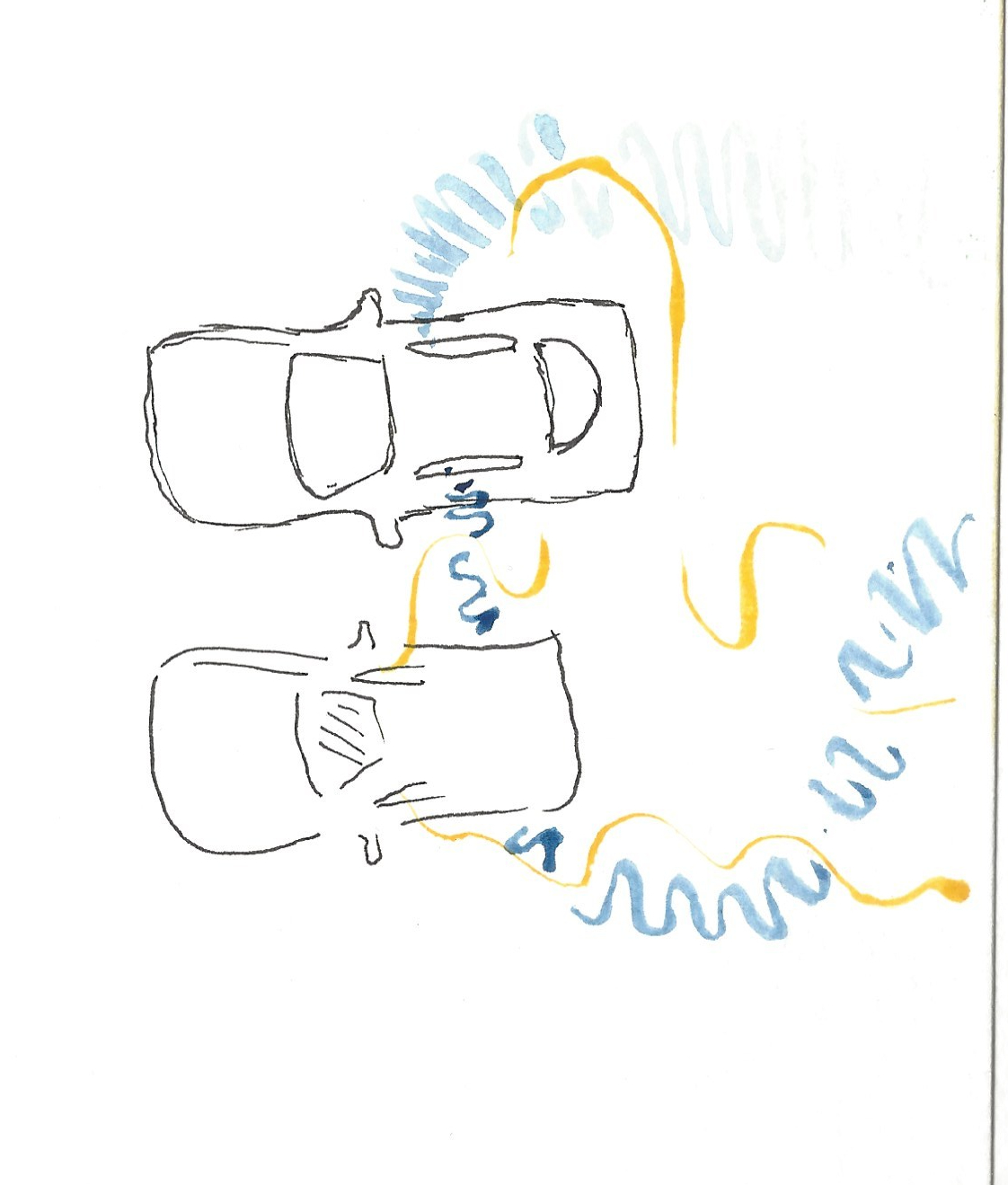 What if you could see music? Can you imagine one car dripping long, droopy sound waves elegantly over the landscape, while out of another came short, staccato flowers, dropped like stepping stones across a stream? Maybe rap looks like hastily scrawled, raspy lines and maybe choral music jumps out the window like majestic redwoods.
