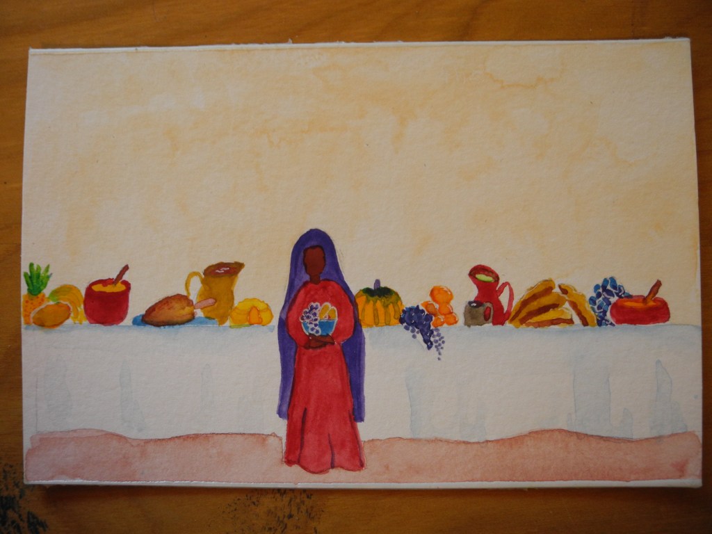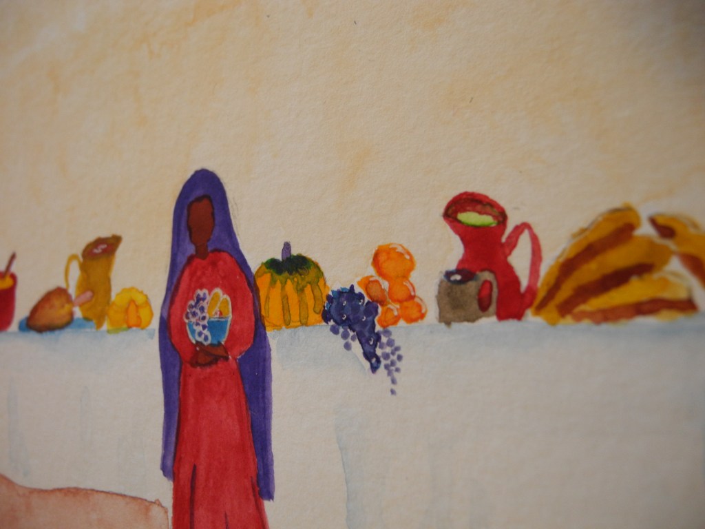 A few days before my deadline I had a vast array of facts, stories, memories (some of these unhinged from context), and images. It was far, far too much. There was no central thread. Instead of writing my draft, I picked up paint instead: