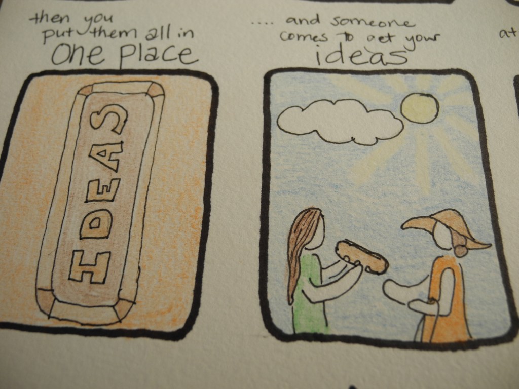 For the month of June we’re exploring how we take care of the imagination. Here’s a comic-strip image of me wondering, “how do we gather ideas?” Enjoy. 😉