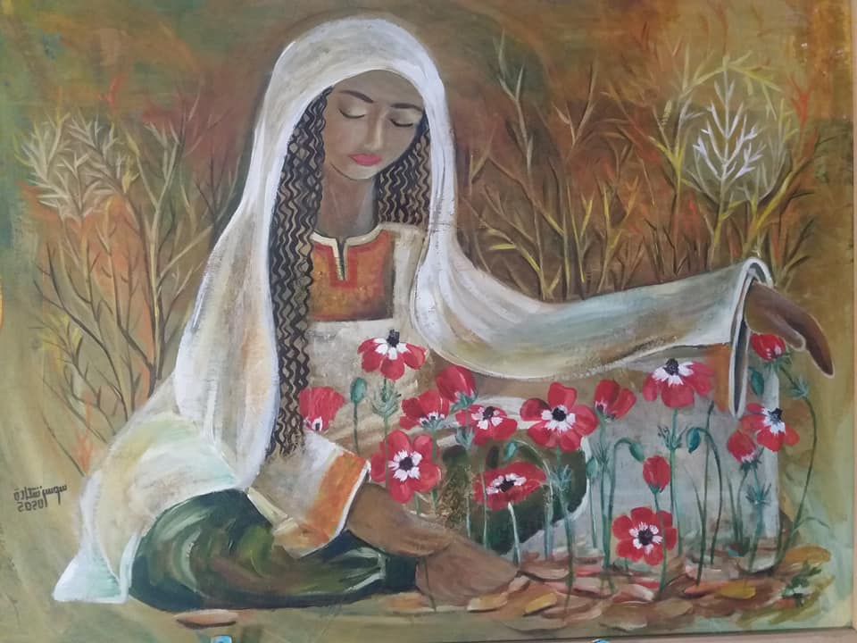 The beautiful featured image is a painting by Sawsan Shashade–it visualizes for me the power of ordinary women who resist despair through finding and nurturing beauty and life.