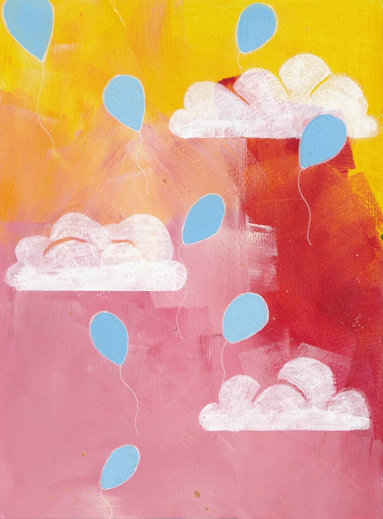 This playful acrylic painting is perfect for a baby’s room. There’s a slight tear in the canvas paper (visible in the picture) which has this painting marked down to $20 (plus shipping – estimate 5-10$ depending on your location). Email me at abrokentulipinbox@gmail.com if you’re interested!