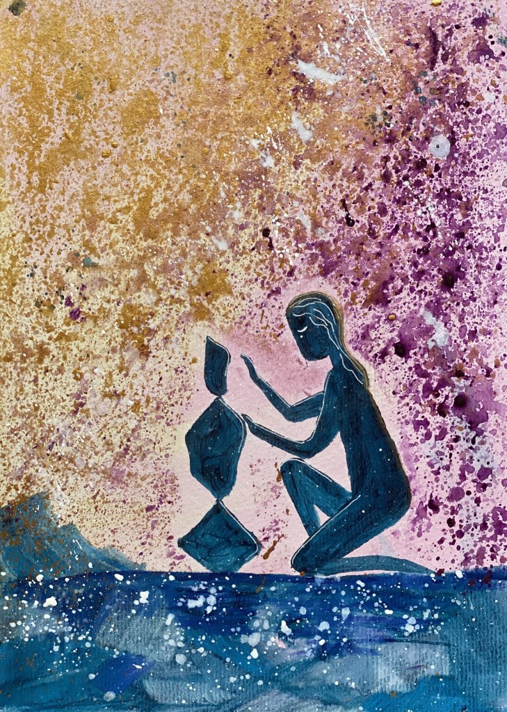 “Building a Home” features a woman balancing stones. It’s now on sale for $40! (Plus 5-10$ shipping depending on your location.) Email me at abrokentulipinbox@gmail.com if you’re interested!